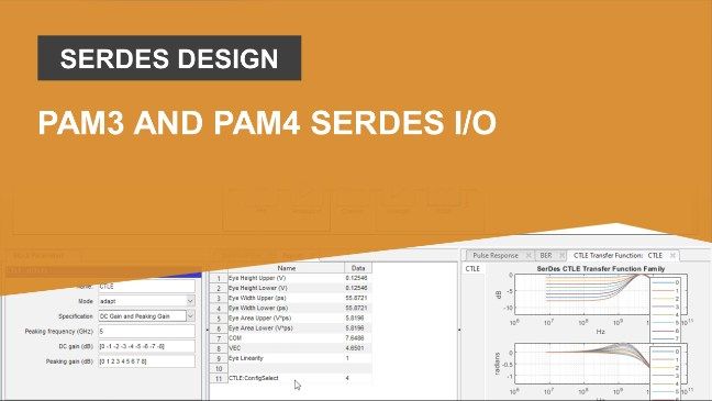 MATLAB® und Simulink® bieten eine Simulationsumgebung, in der Konstruktionsteams SerDes-Systeme modellieren, analysieren und optimieren können. Mit diesen Tools sind sie in der Lage, Zeit- und Frequenzdomänen-Analysen durchzuführen, individuelle Modulationsschemas zu entwerfen und S-Parameter zu importieren, um die Auswirkung von Kanalstörungen auf die Systemleistung noch vor der Erstellung von Hardware-Prototypen zu testen.