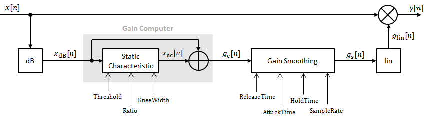 [1] Giannoulis, Dimitrios, Michael Massberg, and Joshua D. Reiss. "Digital Dynamic Range Compressor Design –– A Tutorial and Analysis." Journal of Audio Engineering Society. Vol. 60, Issue 6, 2012, pp. 399–408.
