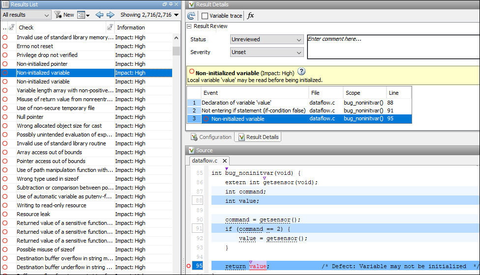 Überprüfen der Polyspace Bug Finder-Ergebnisse in der Polyspace-Benutzeroberfläche