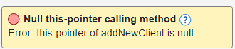 In this example, the this pointer used to call a method addNewClient is NULL.