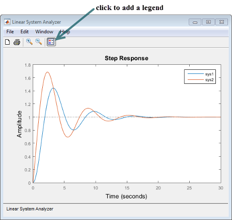 Standardmäßig wird mit dieser Syntax ein Sprungantwortdiagramm Ihrer Modelle geöffnet, wie in der folgenden Abbildung dargestellt.linearSystemAnalyzer(sys1,sys2,...,sysN)