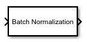 The exportNetworkToSimulink function generates this block to represent a batchNormalizationLayer object.