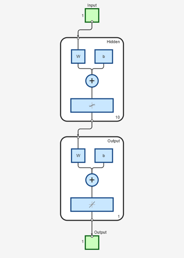 gibt ein neuronales Feedforward-Netz mit einer verborgenen Schichtgröße von net = feedforwardnet(hiddenSizes,trainFcn)hiddenSizes und einer Trainingsfunktion aus, die durch trainFcn angegeben ist.
