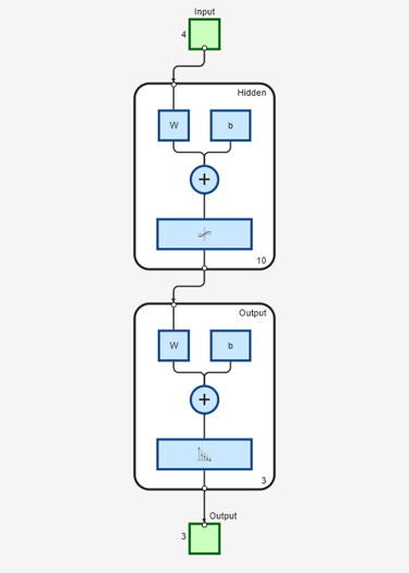 gibt ein neuronales Mustererkennungs-Netz mit einer verborgenen Schichtgröße von net = patternnet(hiddenSizes,trainFcn,performFcn)hiddenSizes, einer durch trainFcn festgelegten Trainingsfunktion und einer durch performFcn festgelegten Leistungsfunktion aus.