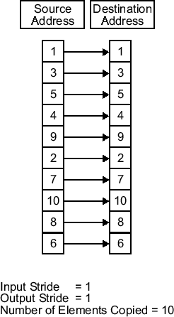 The next two figures illustrate the stride concept. In the first figure, you see data copied without a stride.