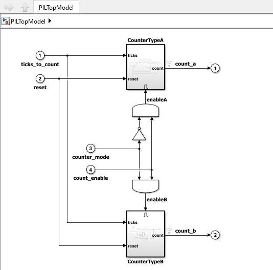 This section shows how to verify the generated code for a top-level model by running a Processor-in-the-Loop (PIL) simulation using the SIL/PIL Manager.