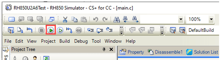 7. In the project tree, right-click RH850 Simulator (Debug Tool) and from the Using Debug Tool option, select RH850 E2.