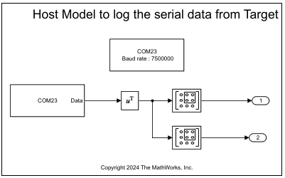 The host model handles data reception from the target hardware using serial data receive blocks. You can use the data visualization methods in Simulink to monitor the data.