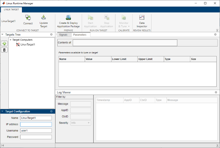 Use the Linux Runtime Manager application to connect, disconnect, add, remove, and update Linux target computers.
