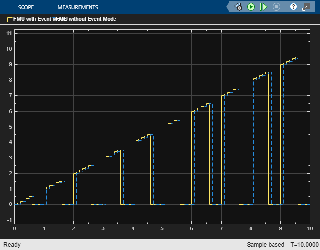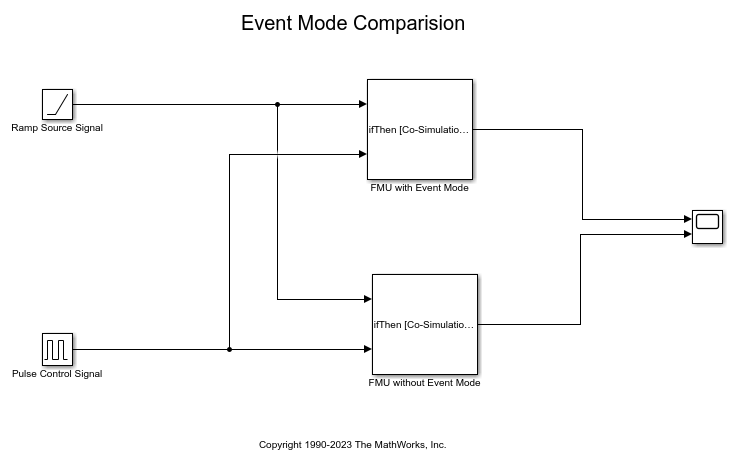 Once the FMU is generated, you can integrate it into the top model FMUEventModeComparision to compare the performance of the FMU with and without event mode.