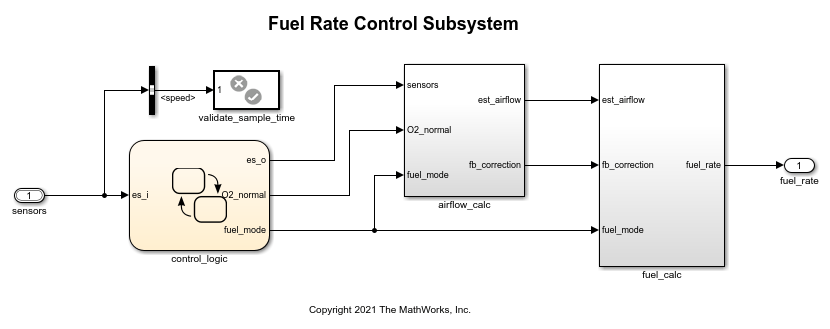 In this example, the air-fuel ratio control system is composed of three Simulink models: