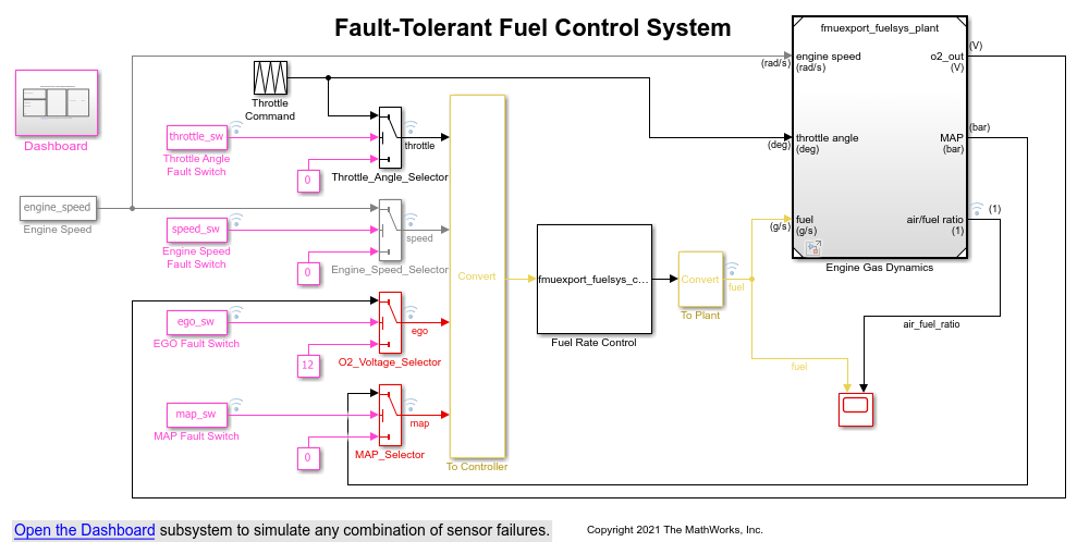 Once the FMU is successfully exported, you may use the top model fmuexport_fuelsys_top to fully integrate the system for testing.