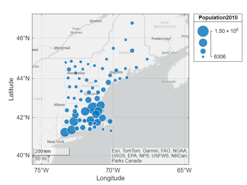 gb = geobubble(counties,"Latitude","Longitude"); geolimits([40.8 47.0],[-76.71 -63.22])
