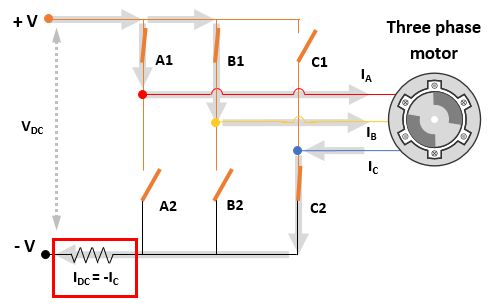The DC bus or single shunt current measurement method only measures the current in