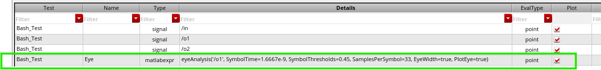In ADE, define measurement entries under Outputs Setup. Add a MATLAB-expression output named like 'Eye' using the following expression: