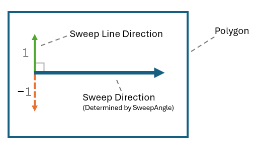 1— Path direction is normal to the desired sweep angle.-1— Path direction is negative normal to the desired sweep angle.0— ThepolygonSweepfunction follows the path direction that results in the fewest number of passes in the sweep path.
