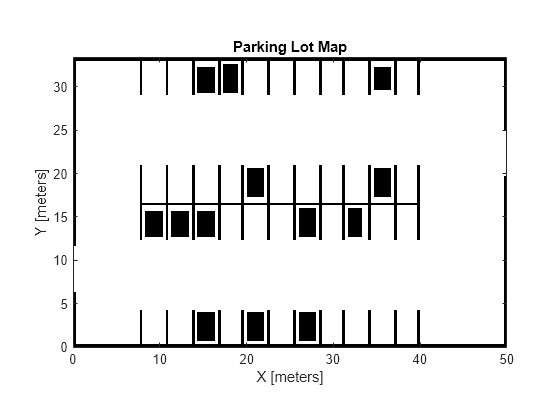 title("Parking Lot Map")![Figure contains an axes object. The axes object with title Parking Lot Map, xlabel X [meters], ylabel Y [meters] contains an object of type image.](../../examples/nav/win64/OptimizationBasedPathSmoothingExample_02.png)