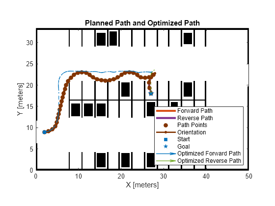 ![Figure contains an axes object. The axes object with title Previous and Updated Optimized Path, xlabel X [meters], ylabel Y [meters] contains 11 objects of type image, line, scatter, quiver. These objects represent Forward Path, Reverse Path, Path Points, Orientation, Start, Goal, Previous Optimized Forward Path, Previous Optimized Reverse Path, Optimized Forward Path, Optimized Reverse Path.](../../examples/nav/win64/OptimizationBasedPathSmoothingExample_08.png)