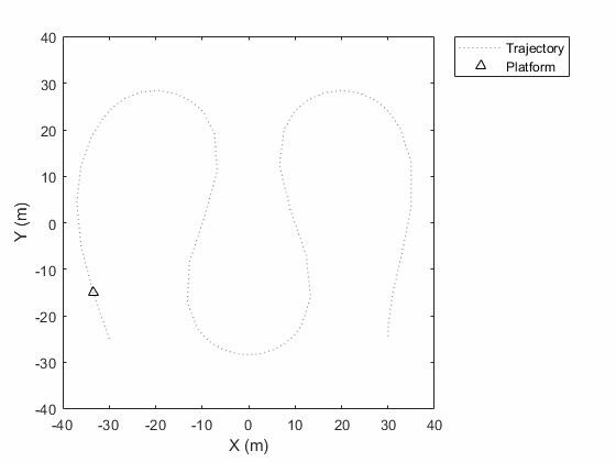tp = theaterPlot('XLim',[-40 40],'YLim',[-40 40]); trajPlotter = trajectoryPlotter(tp,'DisplayName','Trajectory'); plotTrajectory(trajPlotter,{pposition})