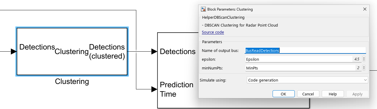 The parameter values in the Clustering block are already defined in helperPeopleTrackingSetup helper function. Change the values, if required.