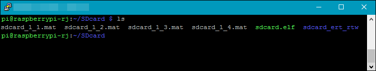 rspecifies the raspberrypi object andmodelnamespecifies the path and name of the file on the target hardware.To copy all the MAT files from the target hardware to the computer specify