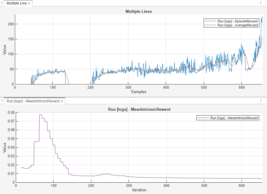 Create a file data logger object using the rlDataLogger function. For more information, see rlDataLogger. To save time while running this example, load a pretrained agent by setting doTraining to false. To train the agent yourself, set doTraining to true. Change agentData.UseRND to false if you don't want to use RND.