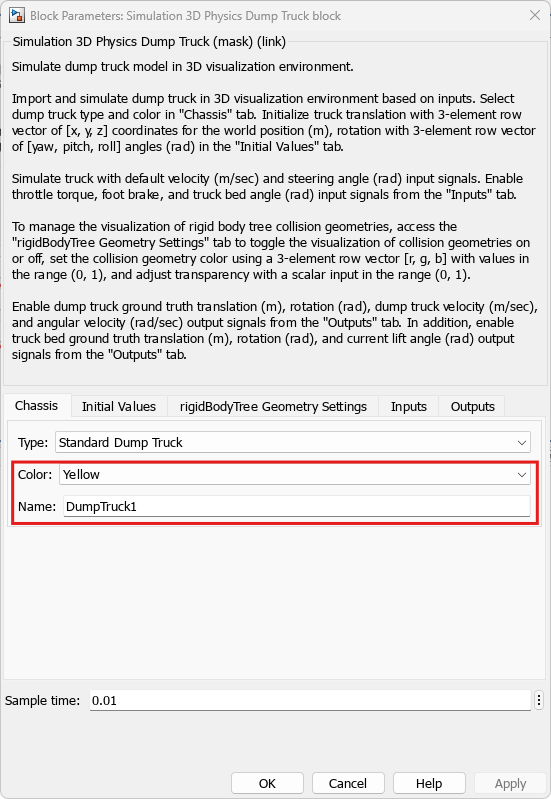 Default Scenes.Set the enabled Scene name parameter to Offroad pit mining scene.