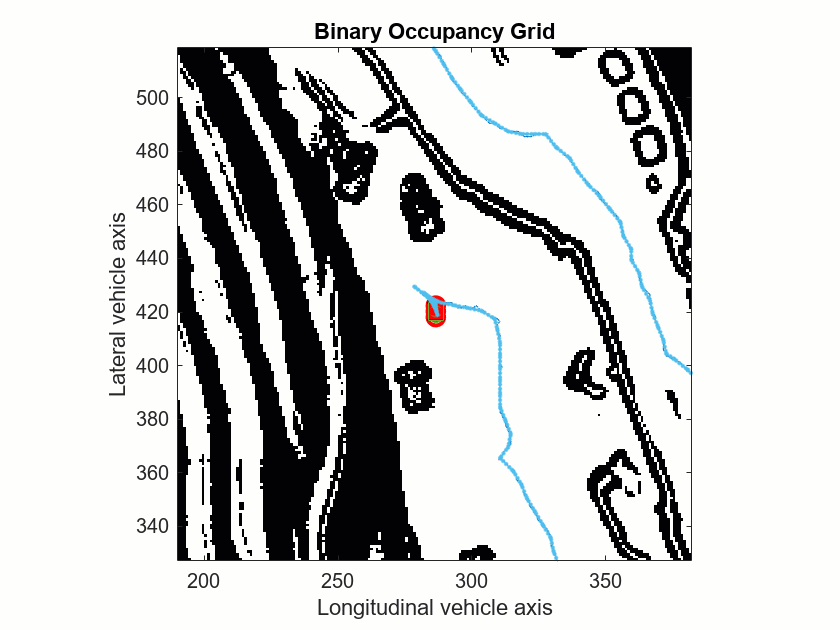 The last example in the series, Model and Control Autonomous Vehicle in Offroad Scenario, shows how to use Simulink® to integrate the road network and planners into an autonomous navigation stack with logic controlled by Stateflow®.