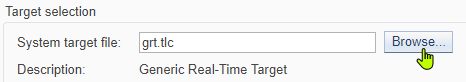 6. Select the Generic Real-Time (GRT) system target file and click Apply.