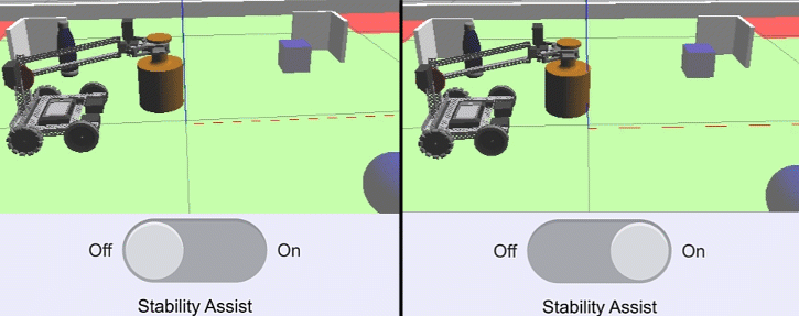 This example shows how to model a robot's control algorithm in Simulink® and simulate the robot using Gazebo simulator. A VEX® V5 Robot is preconfigured in Gazebo Simulator along with a virtual world. The control algorithm is modeled in Simulink and the model is interfaced using Gazebo Co-simulation blocks. This example also allows you to perform stability assistance while lifting heavy objects using feedback from an IMU sensor.