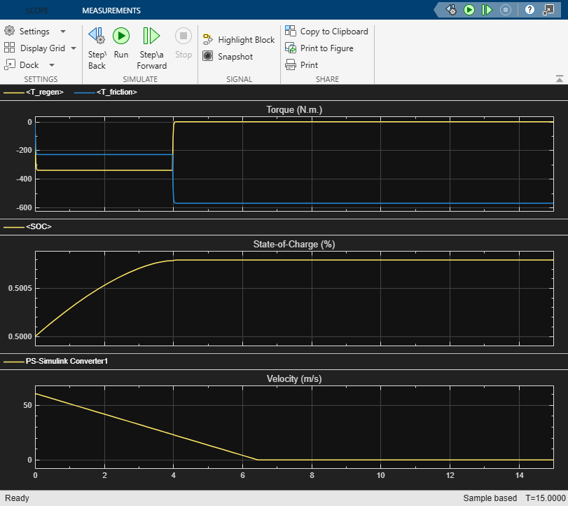 open_system('RegenerativeFrictionBrakingControl'); open_system('RegenerativeFrictionBrakingControl/Scope'); sim('RegenerativeFrictionBrakingControl');