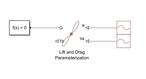Open the test rig model that contains an Aerodynamic Propeller block that is parameterized identically to the wind-powered vehicle Aerodynamic Propeller block.