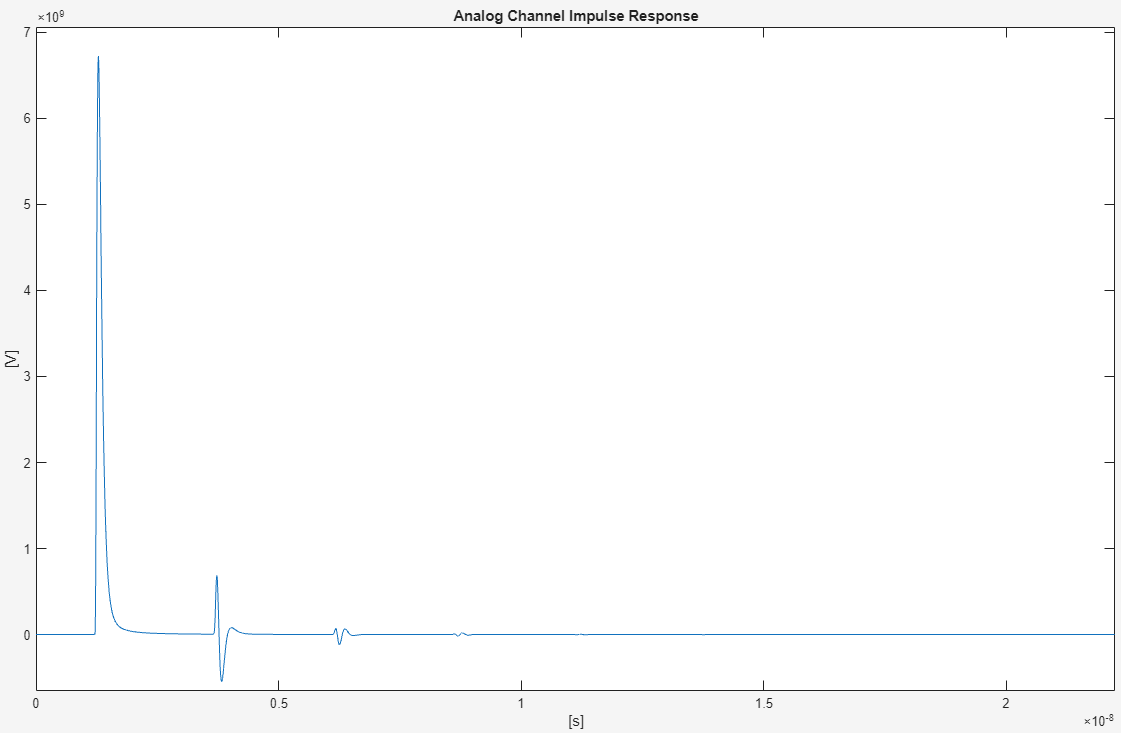 The channel is configured with a low loss and the analog models with unbalanced capacitance to cause several reflective impulse ripples in the impulse response tail. These ripples are perfect targets for canceling out with the floating taps. Actual measured channel models could have more and larger discontinuities to target with floating taps.