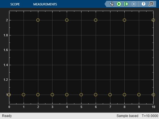 2. Change the plotting settings of the Scope block by selecting Settings > Style from the Scope tab. In the Line Style section, select NONE from the Style list and the circle symbol from the Marker list.