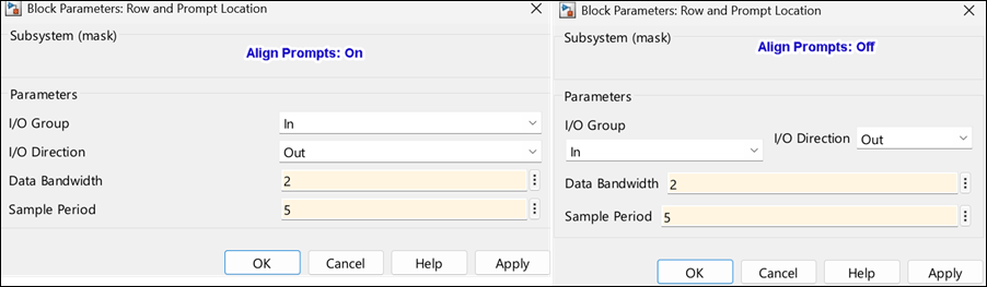 Simulink® Mask Editor helps you customize the dialog box of the block. You can use layout options in the Mask Editor to organize the mask parameters in a clear, concise, and user-friendly manner.