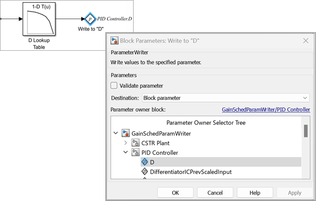 Use Parameter Writer Block to Schedule PID Controller Gain