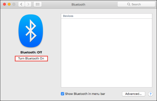 Click the Turn Bluetooth On button.