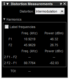 Spectrum Analyzer Distortion Measurements Panel