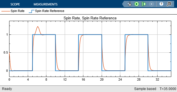 View the controller performance by comparing the spin response and spin-rate response to their respective reference signals.
