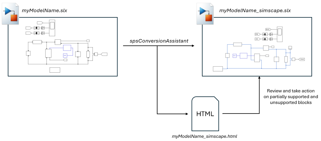After the conversion finishes, review the replaced blocks and manually convert the unsupported blocks to Simscape and Simscape Electrical blocks.