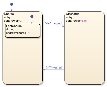 ChargeundDischarge, sodass diese bis zu drei untergeordnete Zustände umfassen. Um die Größe eines Zustands zu ändern, klicken und ziehen Sie eine Ecke nach außen.Fügen Sie unter