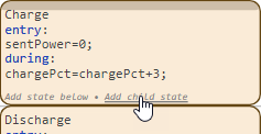 1. Point to the Charge state and click Add child state. Name the child state FastCharge.