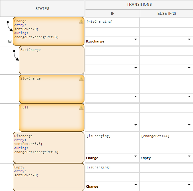 2. Add two additional child states named SlowCharge and Full.