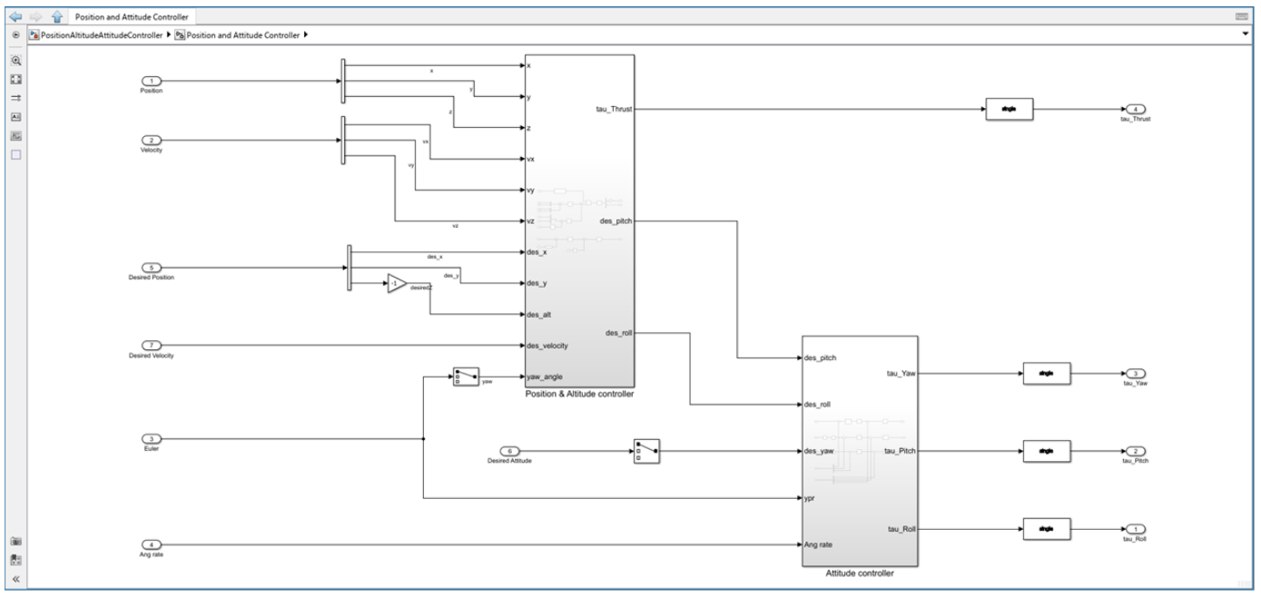 Open the PositionAttitudeControllerCopter.slx model.