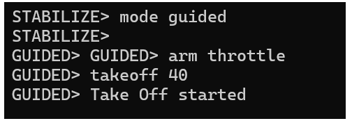 In the MAVProxy window, change the flight mode to GUIDED.
