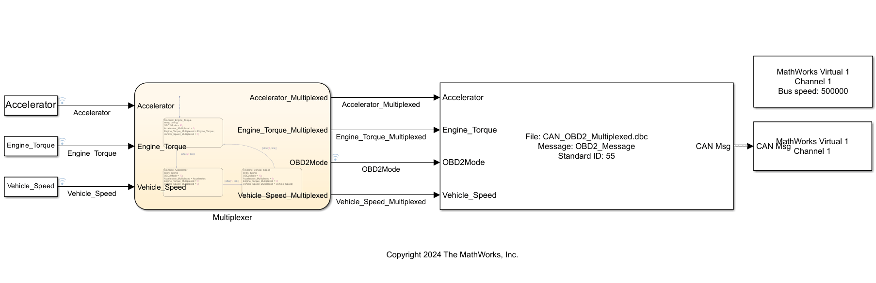 This example shows how to apply multiplexing and demultiplexing to CAN messages.