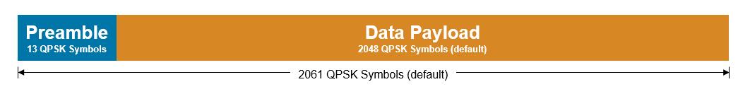 This example uses a simple packet structure with a Barker code preamble of 13 QPSK symbols and a default data payload size of 4096 bits (2048 QPSK symbols). The packet does not contain any other header information and no error correction codes or CRC are added to the data payload.