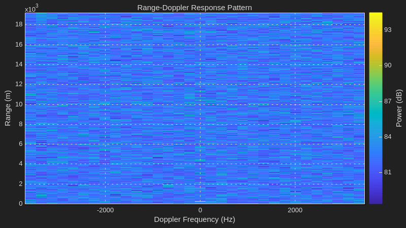 rdResponse = phased.RangeDopplerResponse(... DopplerFFTLengthSource='Property', ... DopplerFFTLength=sim_in.VelDimLen, ... PRFSource='Property',PRF=sim_in.PRF,... SampleRate=sim_in.Fs, ... DopplerOutput='Frequency');