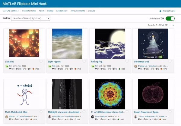I have been procrastinating on schoolwork by looking at all the amazing designs created in the last MATLAB Flipbook Mini Hack! They are just amazing. The voting is over but what are y'all's personal favorites? Mine is the flapping butterfly, it is for sure a creation I plan to share with others in the future!